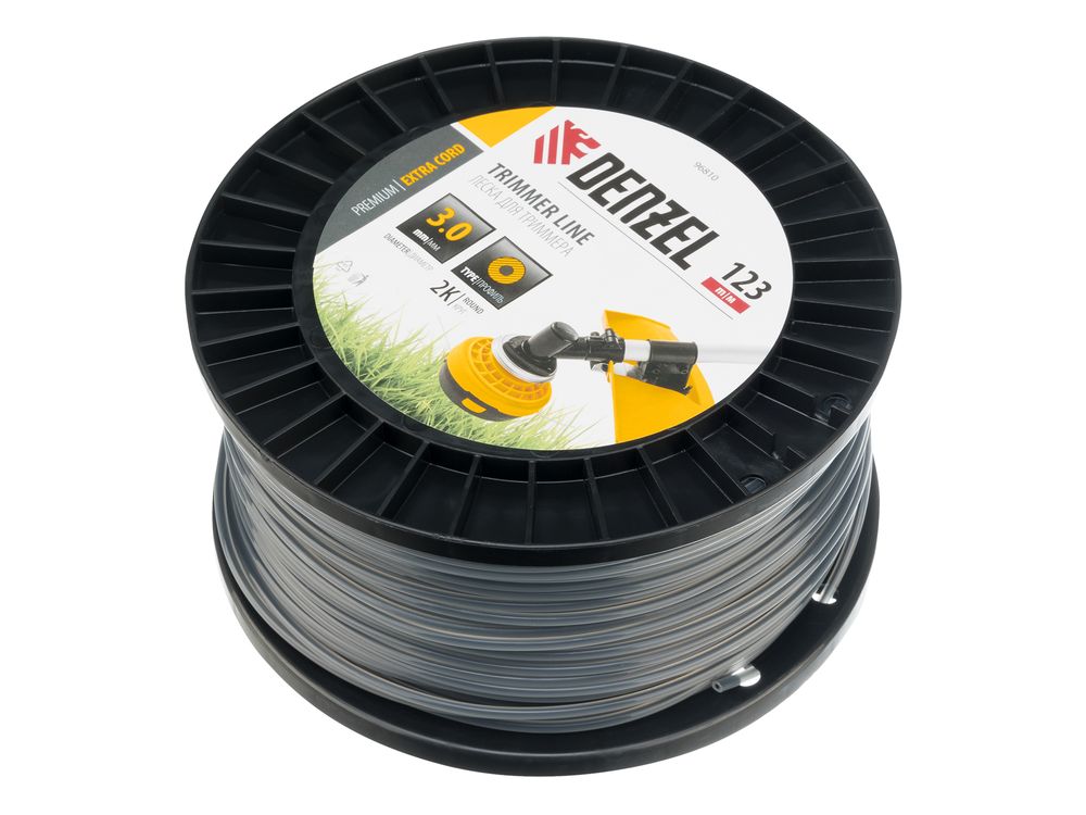 Двухкомпонентная леска для триммера Denzel EXTRA CORD 96810 размером 3,0 мм х 123 м, с круглым сечением, на DIN-катушке, предназначена для работы с бензотриммерами с объемом двигателя 25-52 см3. Используется для скашивания густой травы и растений с толстыми стеблями. Будет полезна для ухода за дачным участком или придомовой территорией.