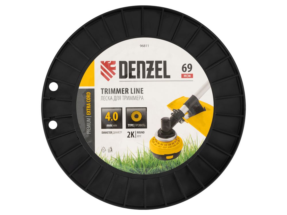 Двухкомпонентная леска для триммера Denzel EXTRA CORD 96810 размером 4,0 мм х 69 м, с круглым сечением, на DIN-катушке, предназначена для работы с мощными бензотриммерами. Используется для скашивания густой травы и растений с толстыми и жесткими стеблями. Будет полезна для ухода за дачным участком или придомовой территорией.