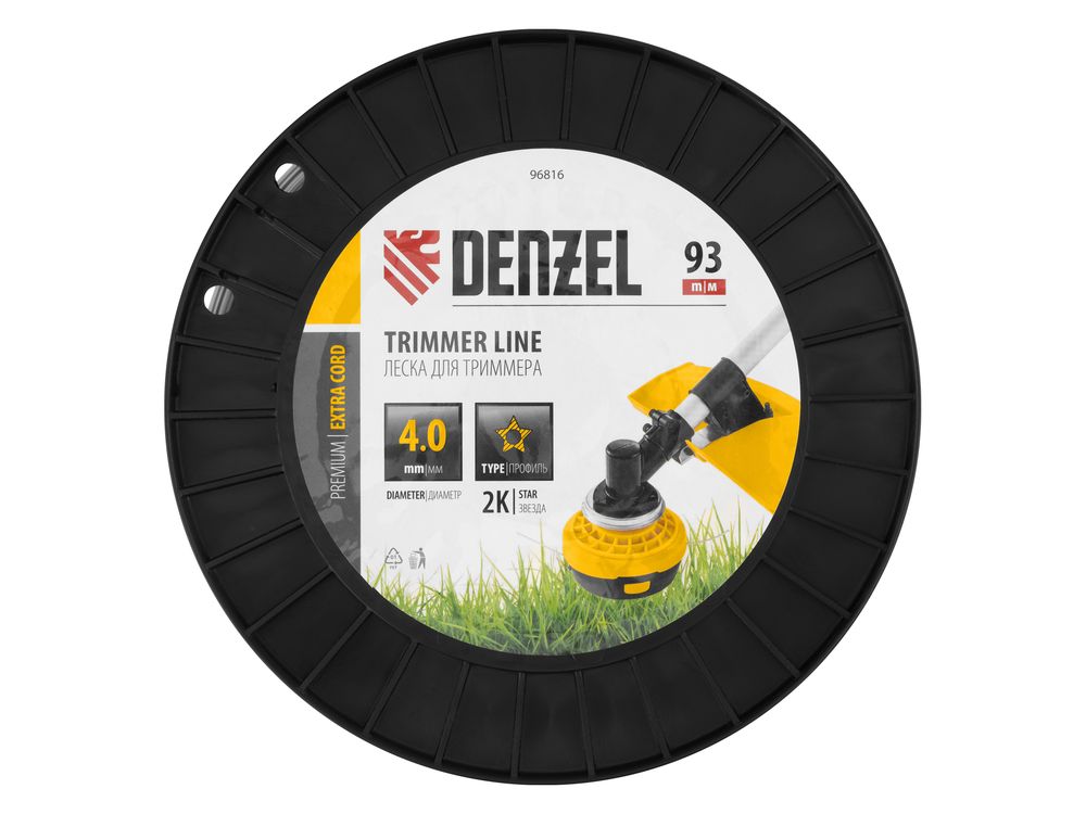 Двухкомпонентная леска для триммера Denzel EXTRA CORD 96816 размером 4,0 мм х 93 м, с сечением «звезда», поставляется на DIN-катушке и предназначена для скашивания плотных зарослей травы и растений с толстыми жесткими стеблями. Заправляется в катушку мощных бензиновых триммеров. Обеспечивает агрессивный рез и высокую производительность. Леска пригодится владельцам загородных участков и сотрудникам коммунальных служб.