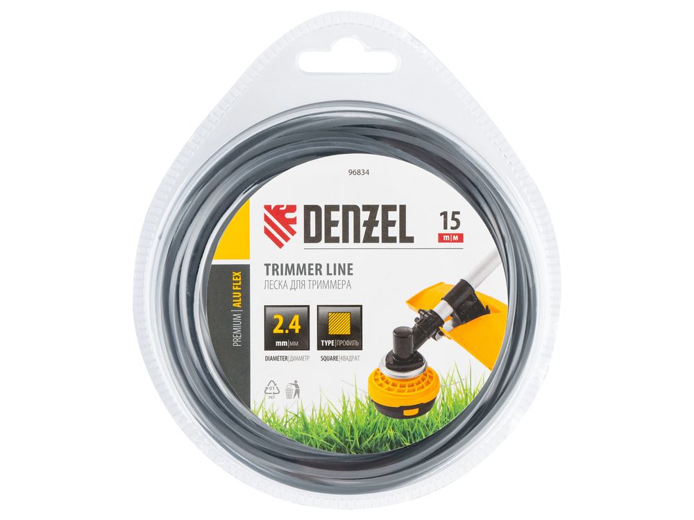 Армированная алюминием леска для триммера Denzel ALUFLEX 96834 квадратного сечения, толщиной 2,4 мм и длиной 15 мм, в блистере, предназначена для скашивания густой травы и растений с толстыми стеблями. Отличается повышенной износостойкостью. Заправляется в катушку электрического триммера или бензотриммера с объемом двигателя 25-52 см3. Леска будет полезна владельцам дачных участков.