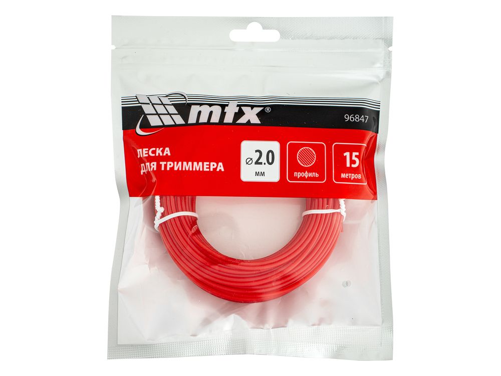 Леска для триммера MTX 96847 круглого сечения, диаметром 2,0 мм и длиной 15 м, предназначена для скашивания травы любой жесткости. Совместима с электрическими триммерами мощностью 1000-1500 Вт. Пригодится владельцам дачных участков.