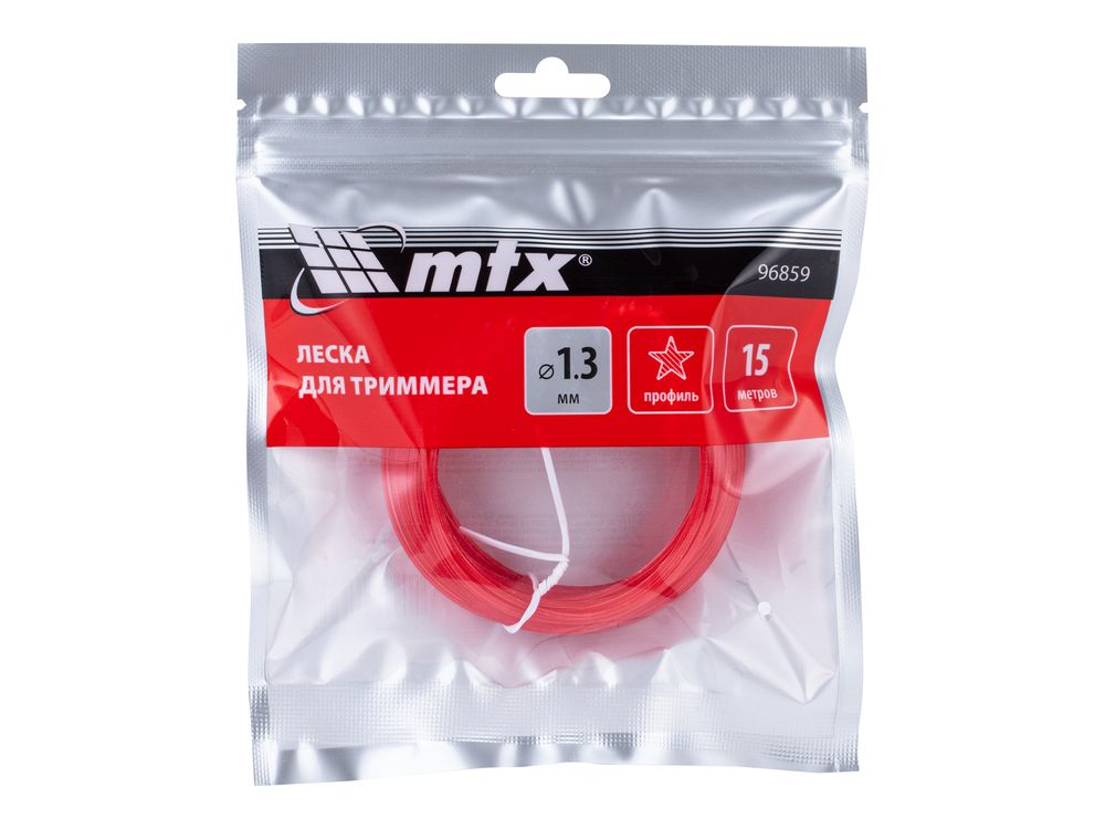 Леска для триммера MTX 96859 с сечением «звезда», толщиной 1,3 мм и длиной 15 м, предназначена для стрижки газонной травы, необходима для ухода за дачным участком. Используется в качестве расходного материала для электрических триммеров мощностью 250-300 Вт.