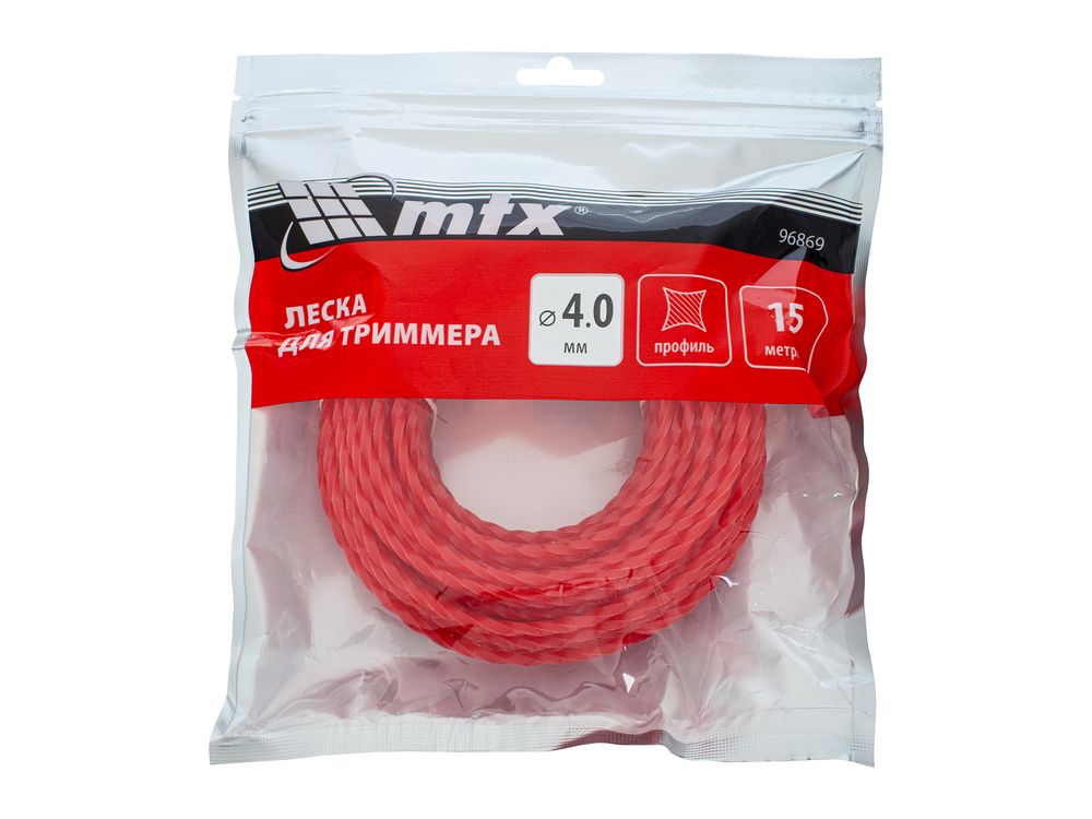 Леска для триммера MTX 96869 с сечением «витой квадрат», толщиной 4,0 мм и длиной 15 м, позволяет быстро и эффективно скашивать газонную, а также высокую, жесткую и сухую траву. С ее помощью можно справиться с растительностью с толстыми стеблями, срезать побеги кустарников. Леска заправляется в катушку мощных бензиновых триммеров. Пригодится для ухода за загородным участком, придомовой территорией и т.д.