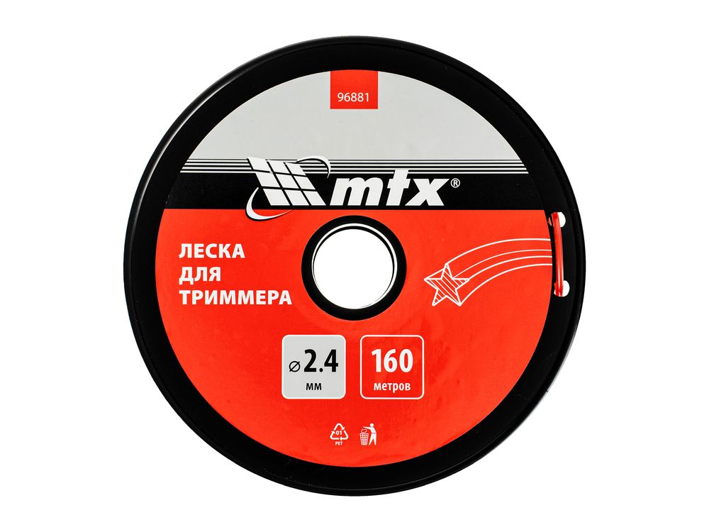 Леска для триммера MTX 96881 с сечением «звезда», толщиной 2,4 мм и длиной 160 м, поставляется на катушке и позволяет скашивать мягкую, молодую траву, а также густую и жесткую растительность. Используется в качестве режущего элемента для бензиновых триммеров. Пригодится на дачном участке, а также для ухода за газонами на придомовой территории, в скверах и т.д.