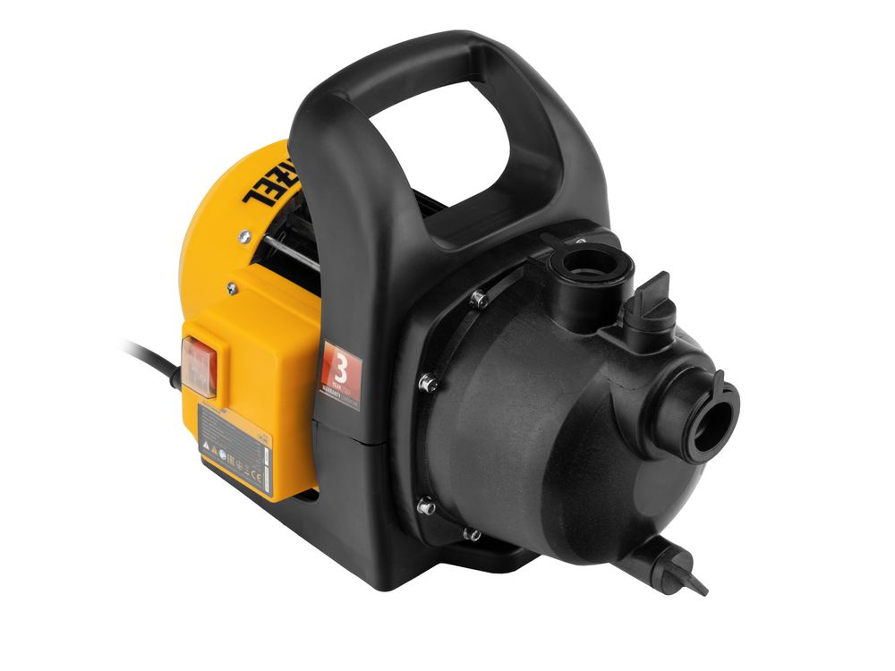 Садовый поверхностный насос Denzel GPL600 97301 мощностью 600 Вт и производительностью 3000 л/ч, с корпусом из пластика, предназначен для забора чистой воды из колодцев, водоемов, различных резервуаров, и подъема ее на высоту до 35 м. Используется для проведения поливочных работ или организации системы водоснабжения в загородном доме. Способен обеспечить водой несколько точек водоразбора.