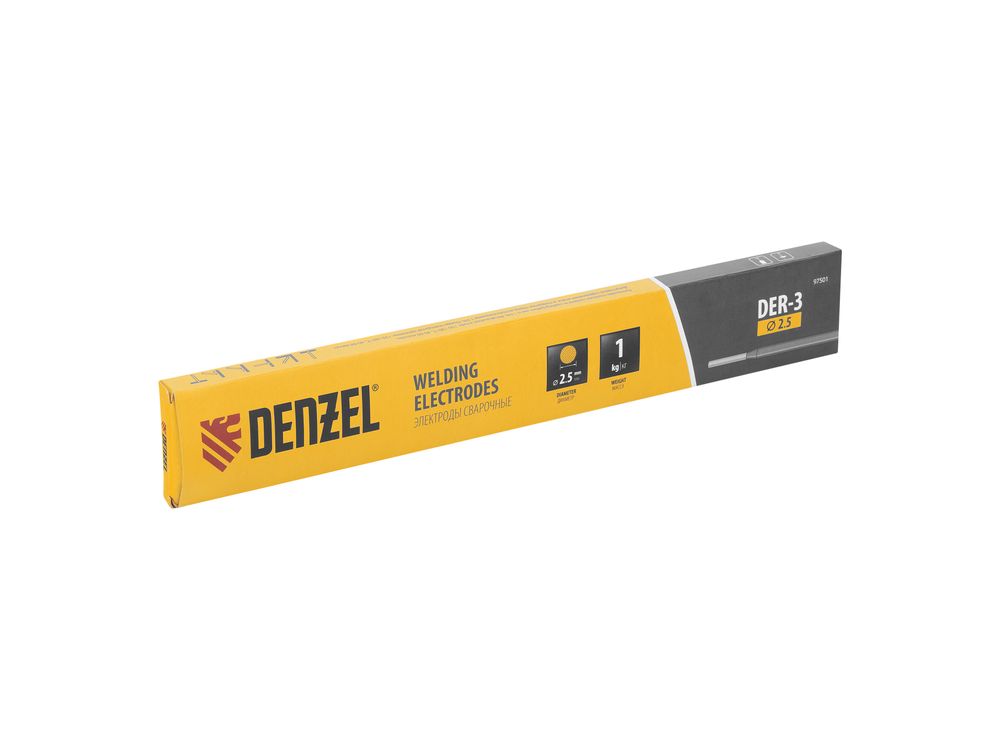 Электроды Denzel 97501 марки DER-3, диаметром 2,5 мм, с рутиловым покрытием синего цвета, 1 кг в упаковке, предназначены для ручной дуговой сварки деталей из углеродистых и низколегированных конструкционных сталей при максимальном токе 140 А. Позволяют получать соединения, устойчивые к вибрациям и воздействию агрессивных сред. Толщина обмазки выше, чем у аналогичных электродов других торговых марок, что обеспечивает высокое качество шва. Электроды используются в нефтегазовой промышленности, судо- и машиностроении, для проведения ремонтных работ, в том числе с резервуарами под давлением. Пригодятся также в быту.