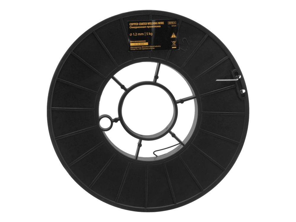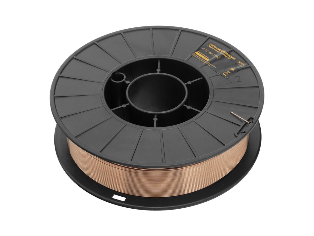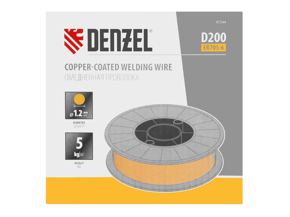 Омедненная проволока Denzel ER70S-6 97544 диаметром 1,2 мм и весом 5 кг, на катушке типа D200, предназначена для полуавтоматической сварки MIG/MAG углеродистых и низколегированных сталей в среде защитных газов. Необходима профессиональным сварщикам, пригодится также частному мастеру.