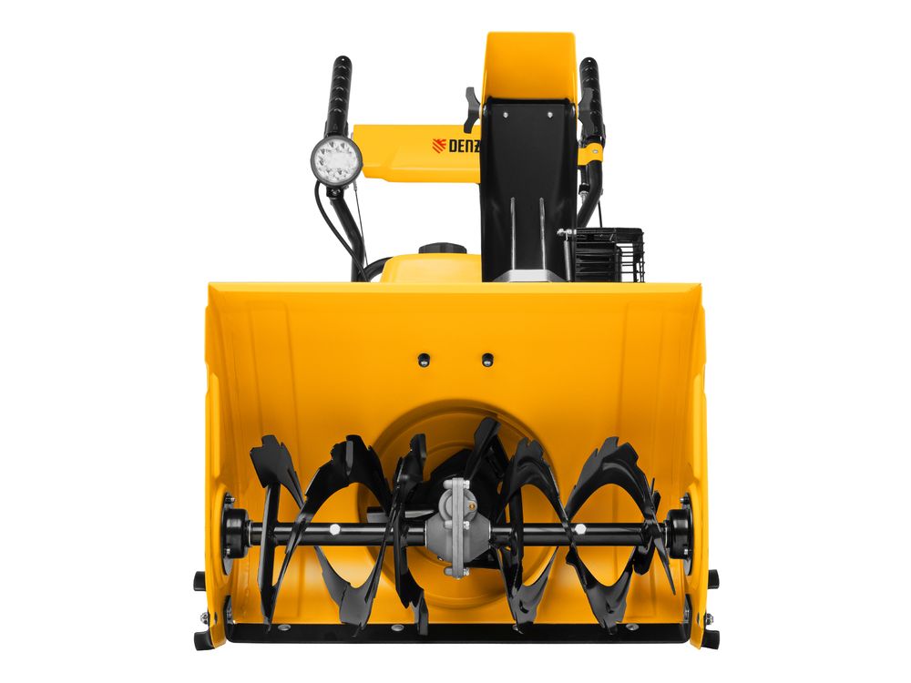 Возможность увеличения ширины захвата 700 мм — на кожух шнека можно установить подрезатели Denzel 97102 (не входят в комплект поставки).