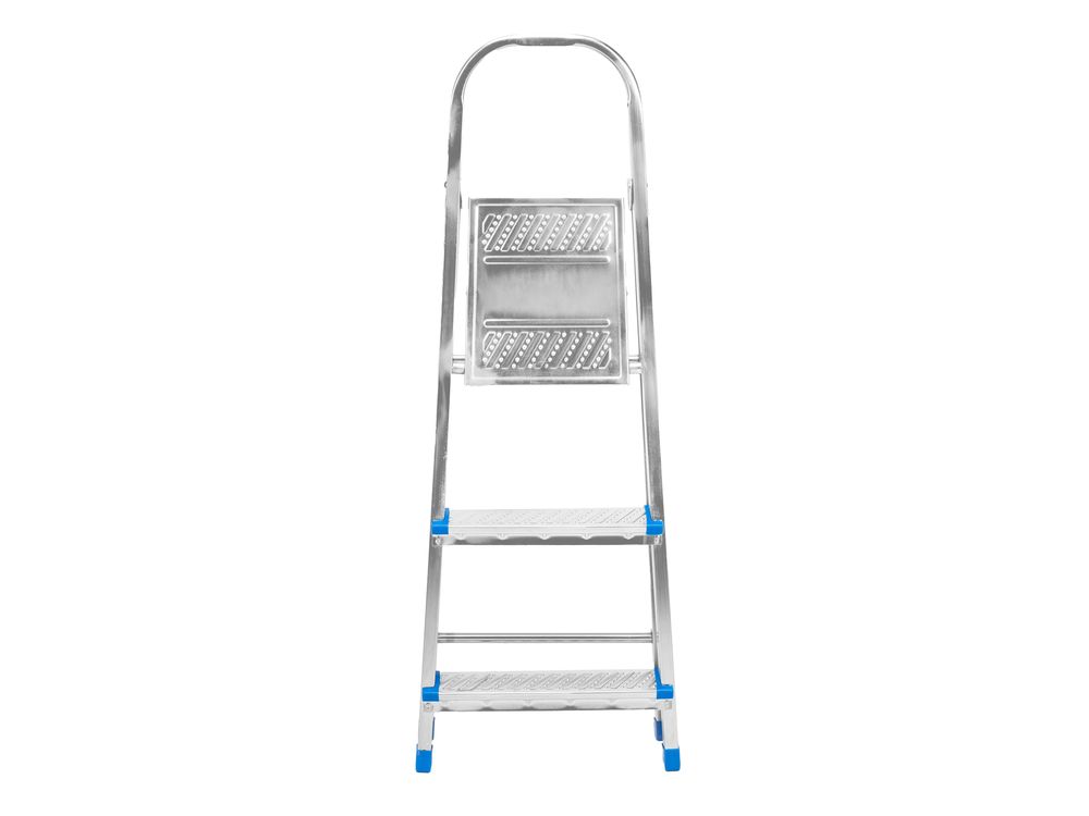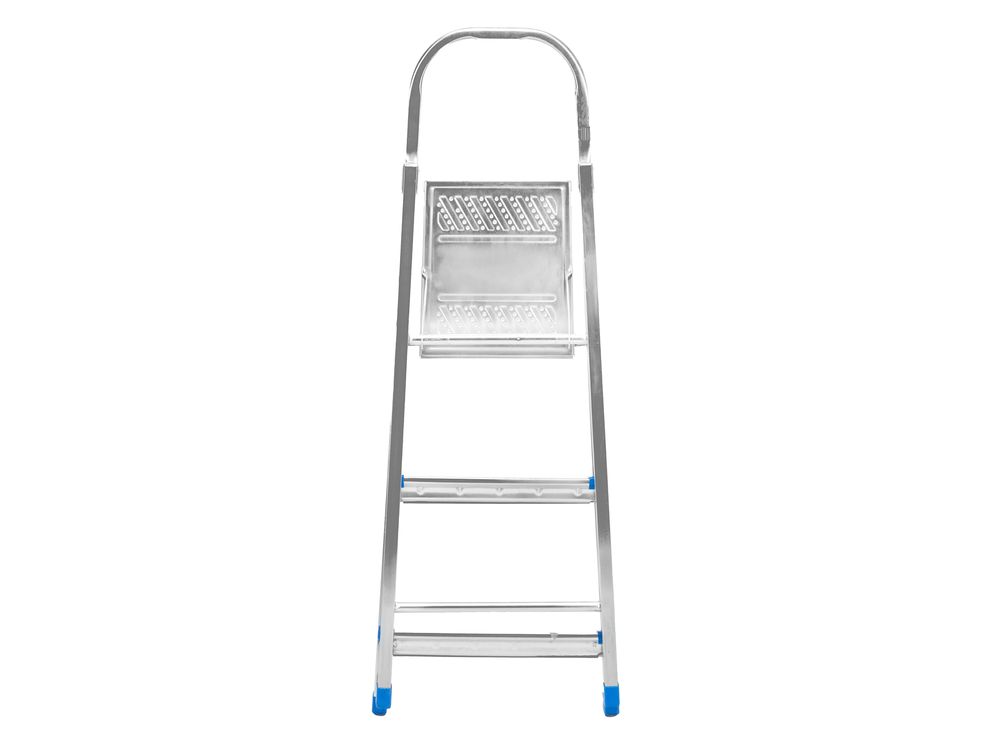 Стальная оцинкованная стремянка Сибртех 97835 с 3 ступенями позволяет повесить полку, картину или шкафчик, достать нужный предмет и решить другие задачи, для которых требуется доступ к предметам на высоте. Рама и ступени из стального профиля выдерживают вес до 120 кг. Расстояние от опорной поверхности до площадки составляет 54 см, при среднем росте пользователя 170 см рабочая высота лестницы — 254 см. Необходимо соблюдать технику безопасности: размещать стремянку только на ровной плоскости и не использовать ее для работы с дрелью, шуруповертом и другим электроинструментом.