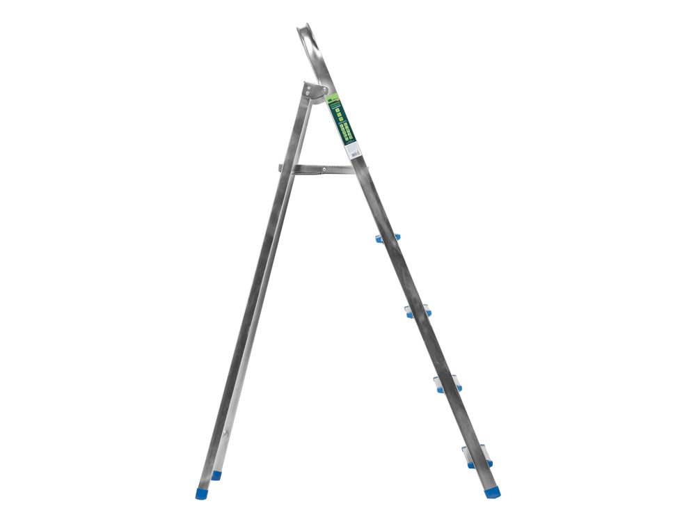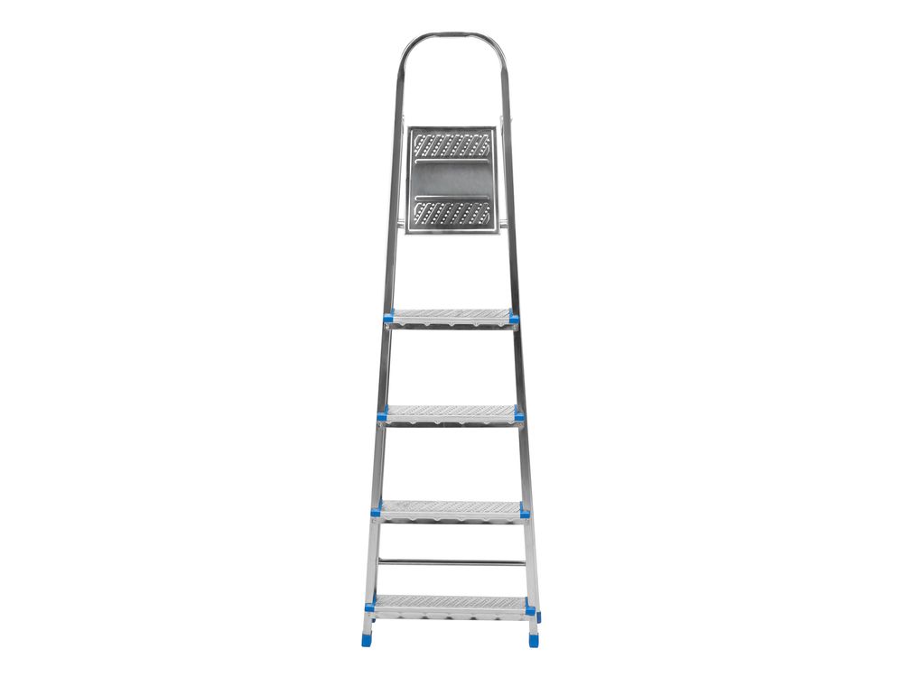 Стальная оцинкованная стремянка Сибртех 97837 с 5 ступенями позволяет повесить полку, картину или шкафчик, достать нужный предмет и решить другие задачи, для которых требуется доступ к предметам на высоте. Рама и ступени из стального профиля выдерживают вес до 120 кг. Расстояние от опорной поверхности до площадки составляет 99 см, при среднем росте пользователя 170 см рабочая высота лестницы — 299 см. Необходимо соблюдать технику безопасности: размещать стремянку только на ровной плоскости и не использовать ее для работы с дрелью, шуруповертом и другим электроинструментом.