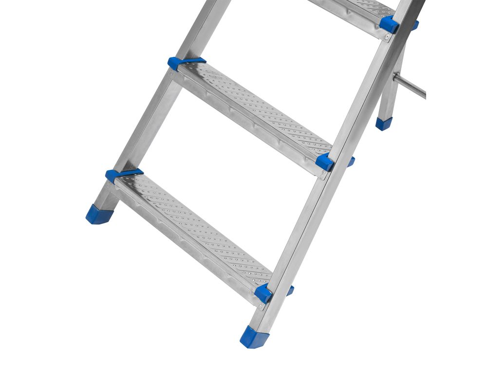 Простая установка — на верхней площадке предусмотрены специальные зацепы для фиксации стремянки в разложенном состоянии.