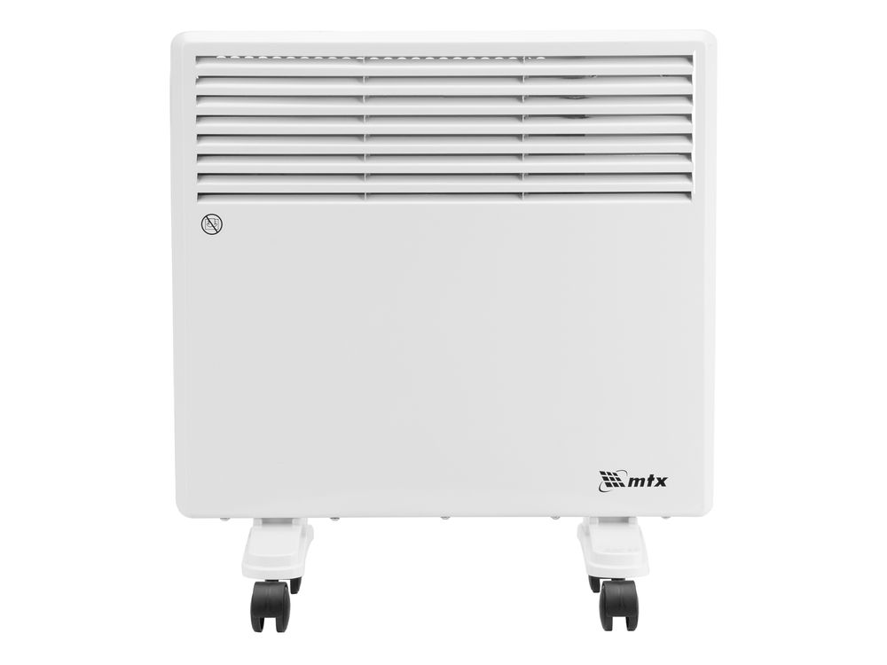 Электрический конвектор MTX CH-1000 98105 максимальной мощностью 1000 Вт, с X-образным нагревателем, термостатом и колесами, — источник тепла для жилых, офисных и хозяйственных помещений. X-образный нагревательный элемент позволяет быстро и равномерно нагреть помещение до нужной температуры. Площадь обогрева составляет 15 м2.