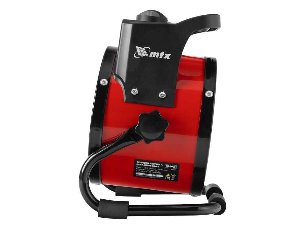 Керамическая тепловая пушка MTX FH-2000 98401 с термостатом, максимальной мощностью 2 кВт, работает в 2 режимах и предназначена для обогрева складов, мастерских и других нежилых помещений площадью до 20 м2. Также может использоваться для быстрой просушки различных поверхностей, например, стяжки пола, оштукатуренных и окрашенных стен.