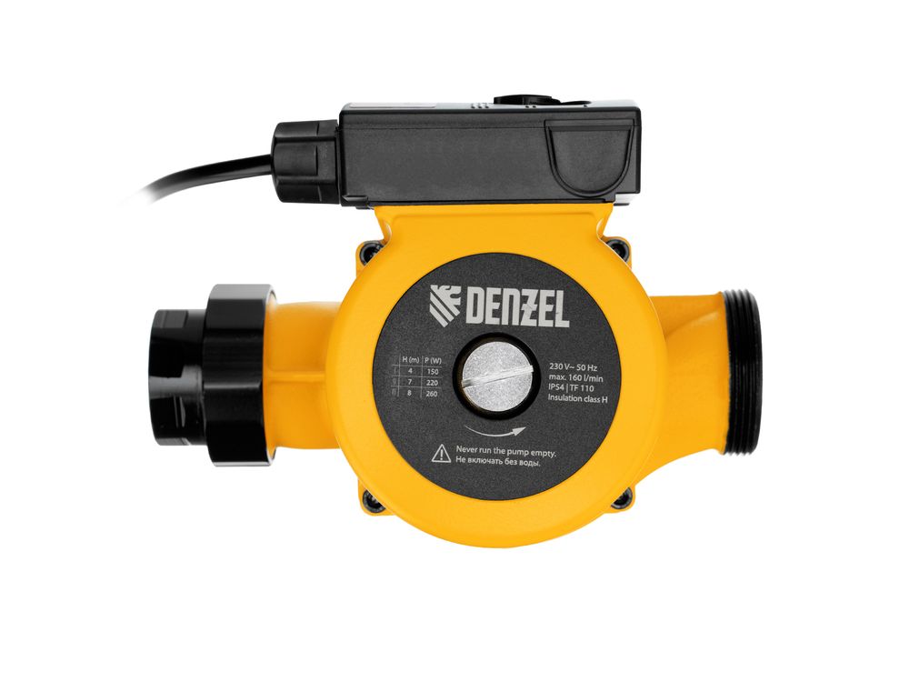 Циркуляционный насос Denzel CP32-8 99415 с кабелем длиной 1 м имеет монтажную длину 180 мм и обеспечивает напор до 8 м, максимальный объем перекачиваемой жидкости составляет 160 л/мин. Устройство обеспечивает непрерывное движение горячей воды температурой до 110 °C по трубопроводу. Насос позволит организовать эффективную систему теплоснабжения загородного дома.