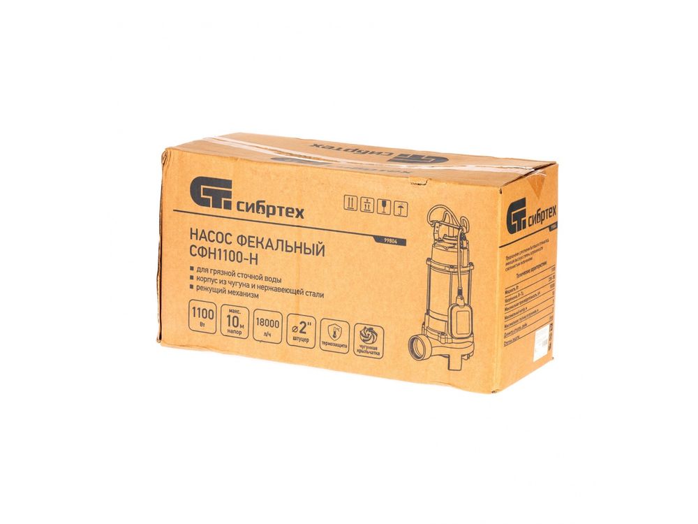 Фекальный насос Сибртех СФН1100-Н 99804 с ножом имеет мощность 1100 Вт и производительность до 18000 л/ч, обеспечивает напор до 10 м, подходит для шлангов диаметром 2 дюйма и применяется для работы с чистой или грязной водой на глубине погружения до 5 м. Используется для перекачки жидкости из стоков, выгребных ям, емкостей и водоемов, а также для аварийной откачки воды из подвалов, погребов, траншей, котлованов. Его можно использовать для организации систем полива на даче. Насос оптимален для установки в канализационной системе: специальный нож измельчает крупные частицы, что позволяет избежать засорения. Также работает с холодными стоками, при этом температура жидкости не должна превышать 35 градусов.