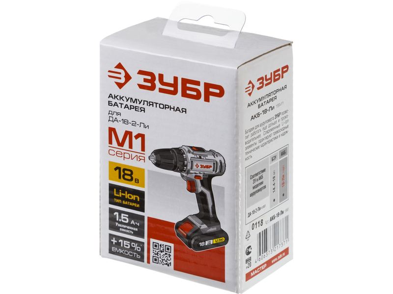 Батарея ЗУБР МАСТЕР АКБ Li-Ion, тип М1, 1.5Ач, 18В