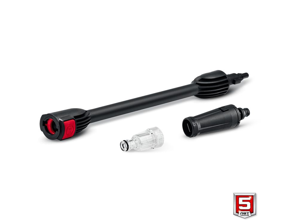 Быстросъемное соединение шланга, распылителя и насадок позволяет оперативно собирать и переподключать компоненты