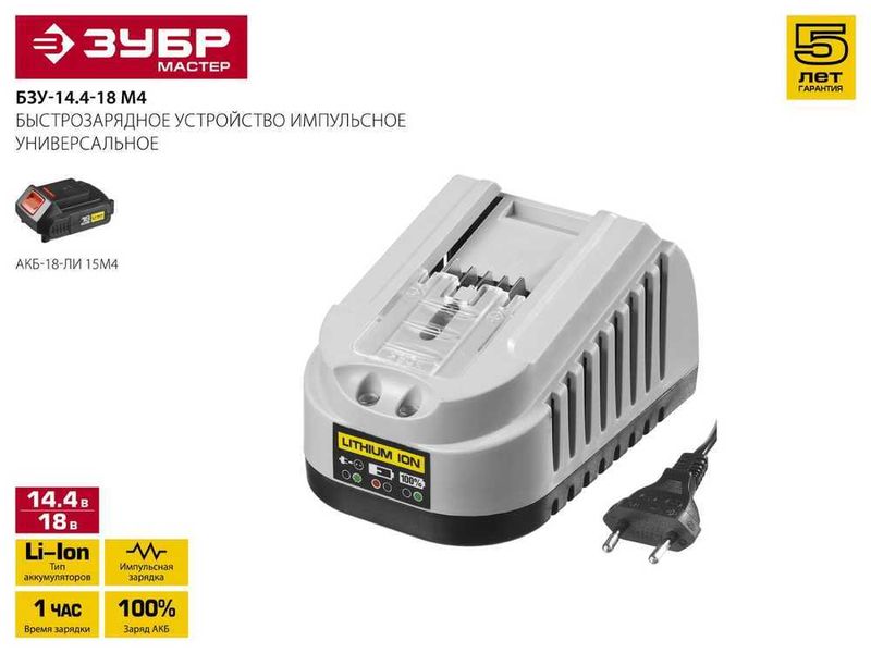 Полностью цифровое интеллектуальное устройство для бережной и максимальной (в отличие от устройств другого типа) зарядки батареи - для полной отдачи Вашего инструмента ЗУБР