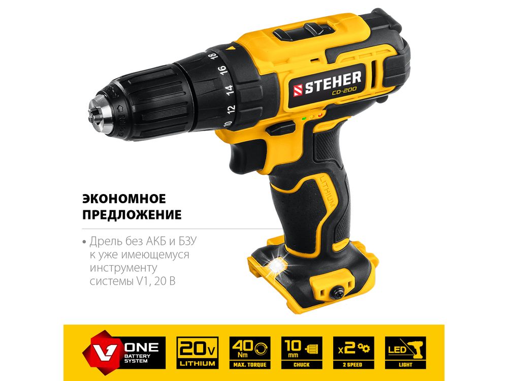 Купить STEHER 20В, без АКБ, в коробке, дрель-шуруповерт. CD-200