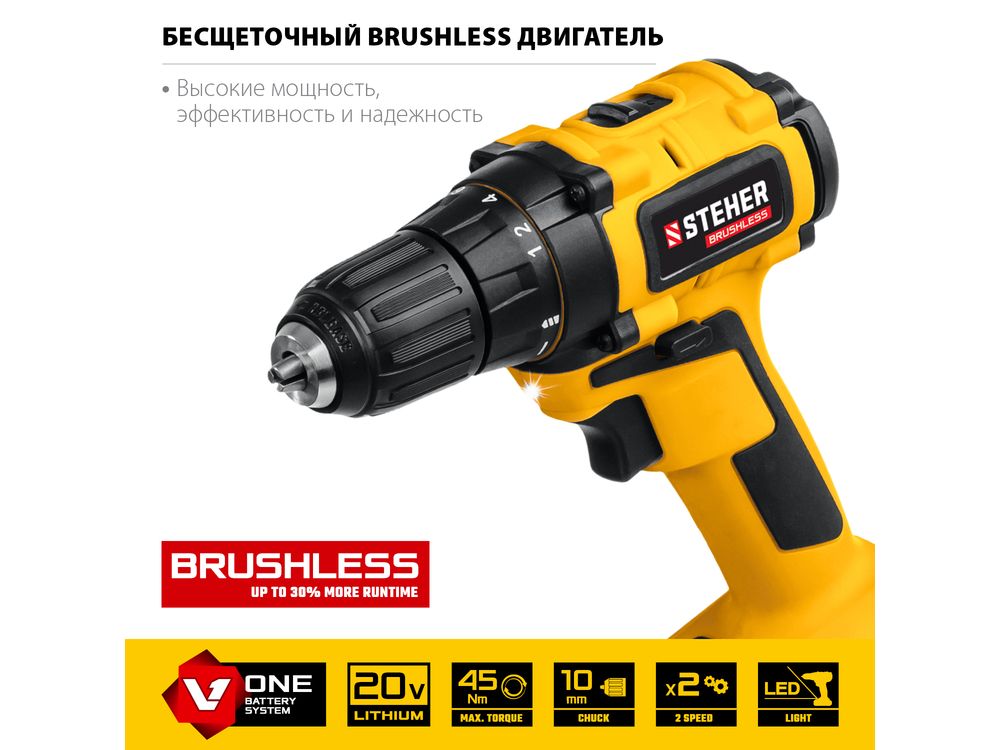 STEHER 20В бесщёточная дрель-шуруповерт, 2 АКБ (2Ач), в кейсе. CDB-200-2
