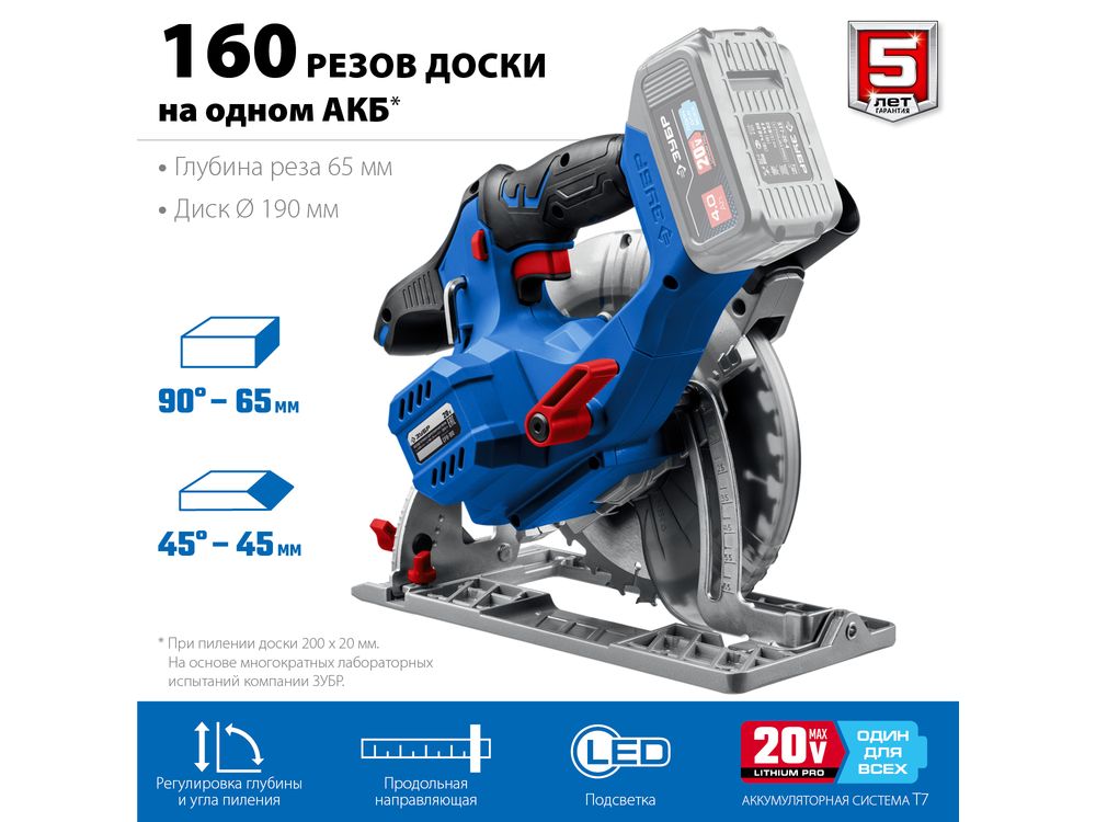 Купить ЗУБР 20В бесщеточная пила циркулярная, без АКБ, в коробке, Профессионал. CPB-190