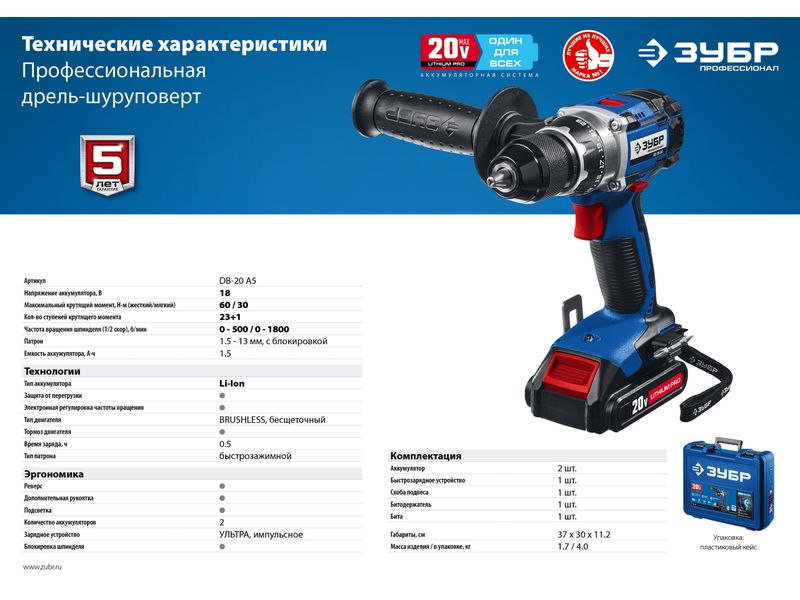 Высокотехнологичный шуруповерт профессионального уровня с передовым BRUSHLESS двигателем. Высокий крутящий момент 60 Нм, надежность конструкции и отличная эргономика позволяют выполнять практически любую работу - сверление дерева сверлом Левиса, сверление металла ступенчатым сверлом, заворачивание крепежа диаметром до 12 мм, перемешивание ЛКМ и прочее без усилий с Вашей стороны и перегрузки инструмента. Комплектация с двумя батареями и быстрозарядным устройством позволяет начать работу сразу после покупки