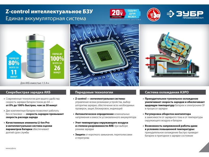 Быстрозарядное интеллектуальное устройство с системой Ультра: - заряжает импульсной подачей тока; - оснащено вентилятором для активного охлаждения заряжаемой батареи; - благодаря току до 4А заряжает батарею за 30 минут;
