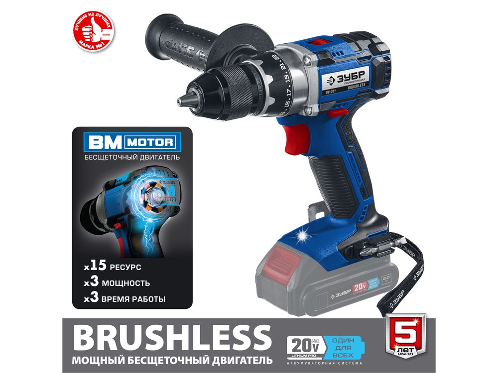 Купить ЗУБР 20В бесщеточная дрель-шуруповерт, без АКБ, в коробке, Профессионал. DB-201