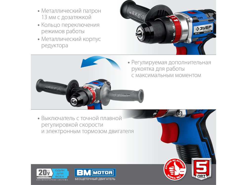 Бесщеточный BM-Motor двигатель обладает целым рядом преимуществ по сравнению с обычным щеточным двигателем: - высокий крутящий момент – в 2 раза выше, чем у аналогичного щеточного двигателя, - высокий КПД благодаря максимально эффективному преобразованию электромагнитной энергии в механическую (ввиду отсутствия перекоммутаций),