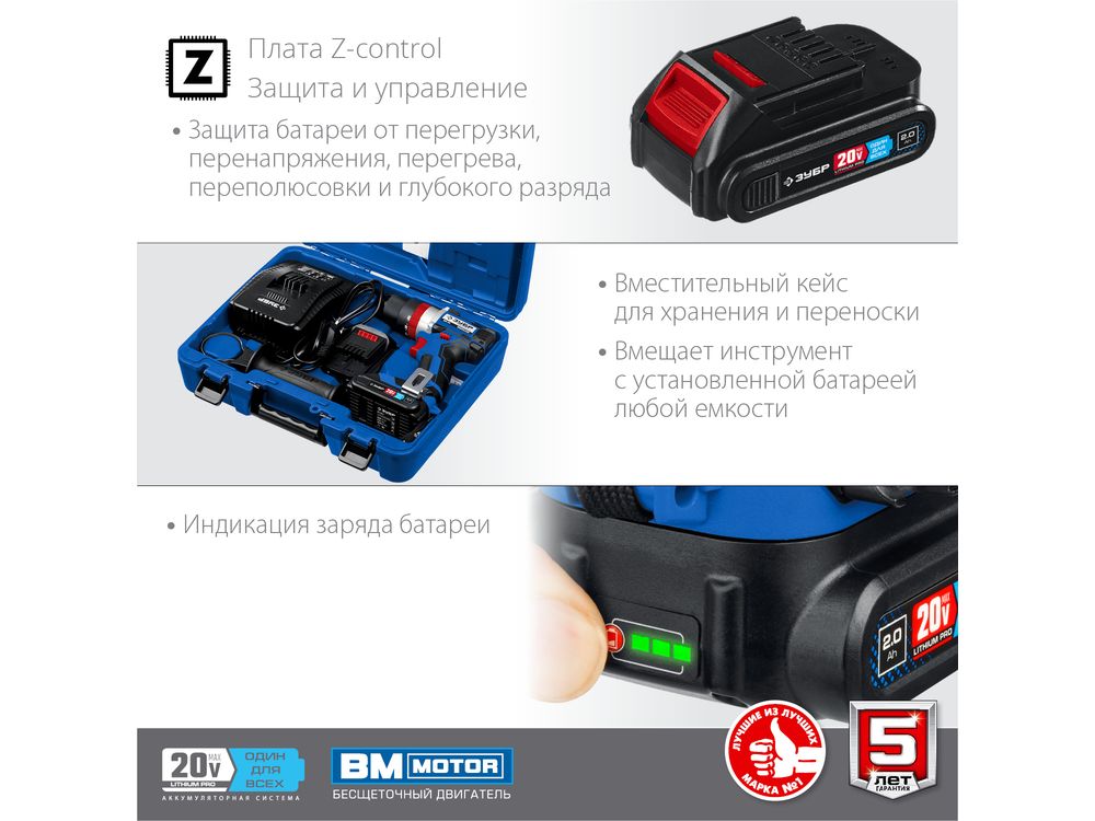 Плата управления батареи с технологией Z-control обеспечивает: -защиту от перегрева, глубокой разрядки и перегрузки, -защиту от КЗ контактов, -балансировку элементов для полной зарядки каждого из них индивидуально