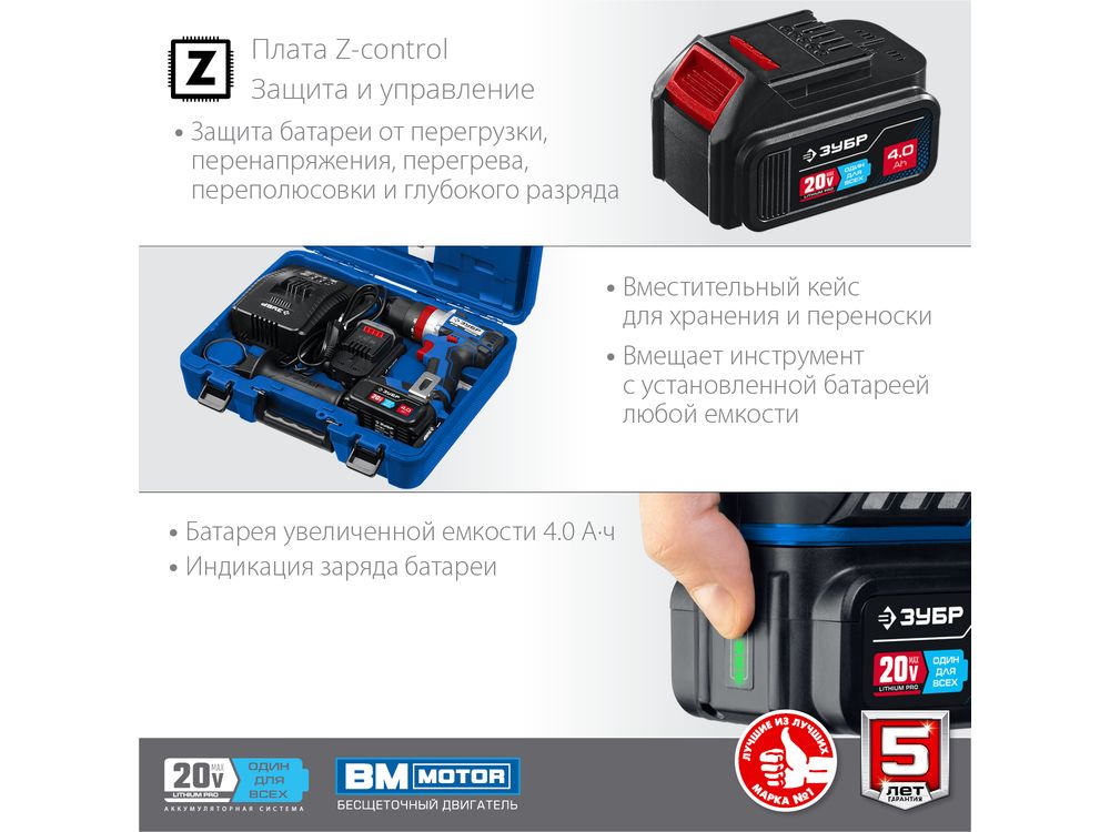 Плата управления батареи с технологией Z-control обеспечивает: -защиту от перегрева, глубокой разрядки и перегрузки, -защиту от КЗ контактов, -балансировку элементов для полной зарядки каждого из них индивидуально
