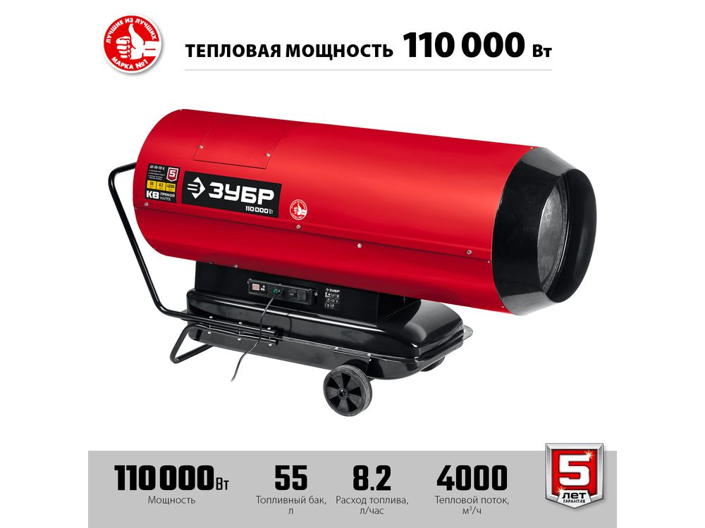 ЗУБР 110 кВт дизельная тепловая пушка, прямой нагрев