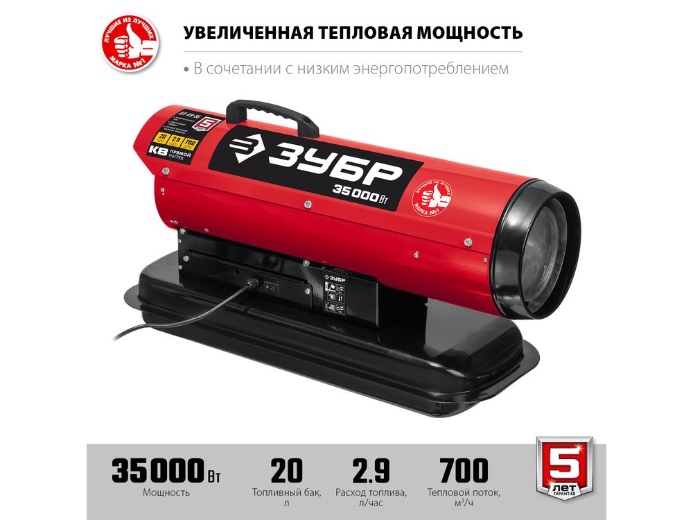 ЗУБР 35 кВт дизельная тепловая пушка, прямой нагрев