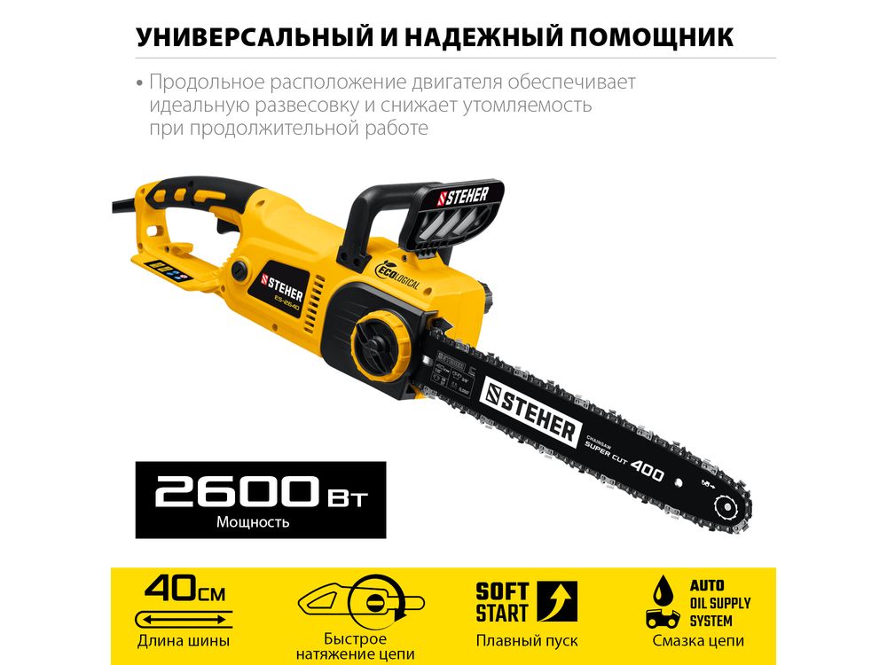 STEHER 2600 Вт, 40 см шина, пила цепная электрическая