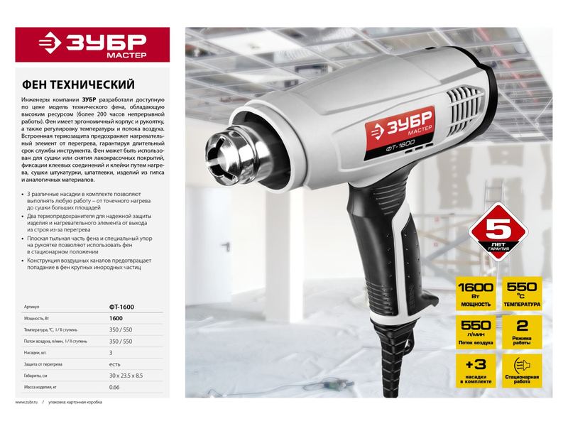 Недорогая модель в эргономичном дизайне для широкого спектра применения - сушка, размораживание, упаковка, отвердение, внятие ЛКМ и т.д.. Конструкция с переменным воздушным потоком и надежным нагревательным элементом обеспечивает эффективную и длительную работу. Внимание! Начиная с даты производства 05.2022, инструмент поставляется в красном цвете вместо серого. Без изменения уровня качества