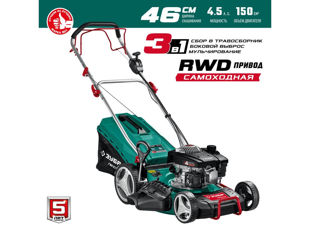 ЗУБР 460 мм 4.5 л.с. самоходная газонокосилка бензиновая