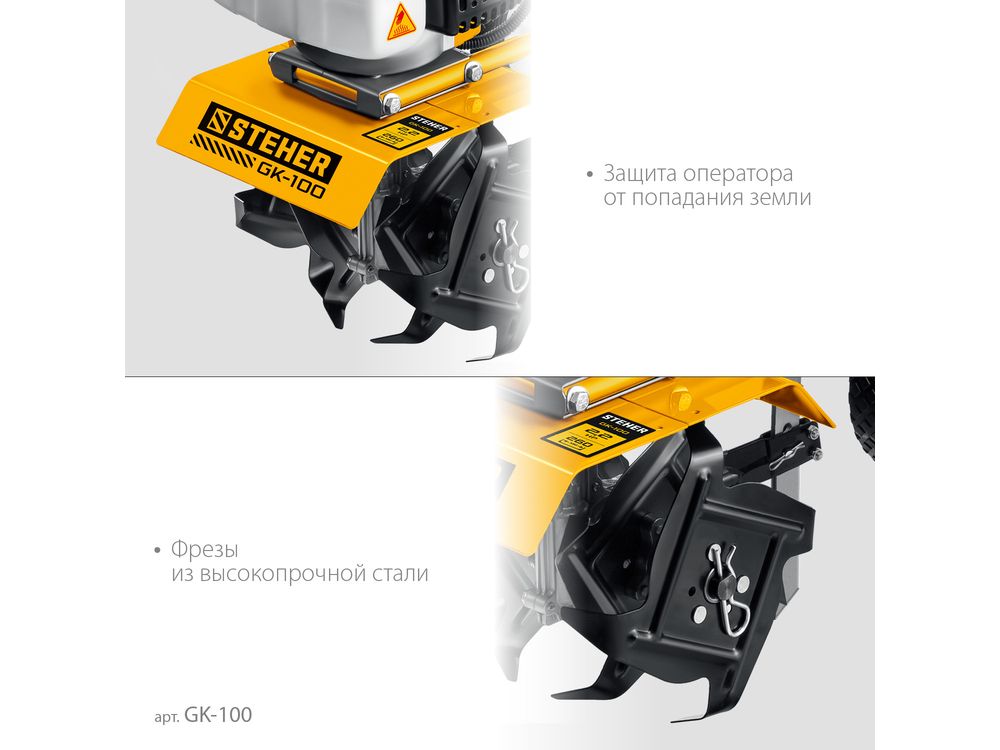 На корпусе предусмотрен щиток, защищающий оператора от попадания земли,