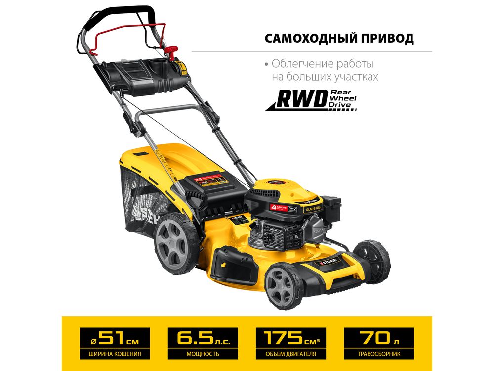 Купить STEHER 510 мм 6.5 л.с самоходная газонокосилка бензиновая