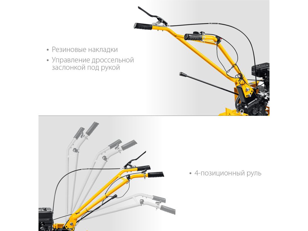 Рукоять мотоблока с возможностью регулировки по вертикали делает управление более комфортным