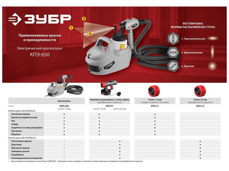 Универсальный инструмент для распыления большинства лакокрасочных материалов. Теперь стало просто и быстро окрасить поверхность, обработать антисептиком, покрыть лаком и нанести узоры. Краскораспылитель с современной технологией распыления материала исключает затраты на расходные материалы (валики, кисти), уменьшает расход наносимого материала, предотвращает образование разводов и потеков, существенно улучшает качество и облегчает работу.
