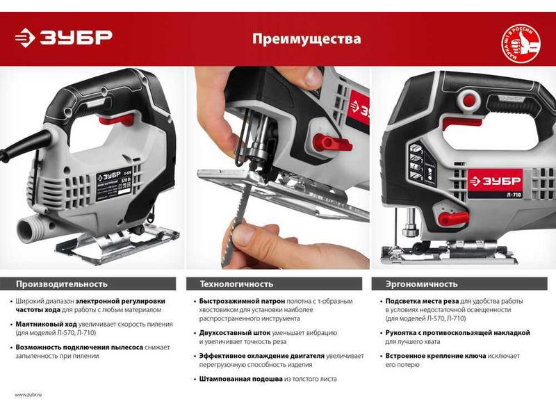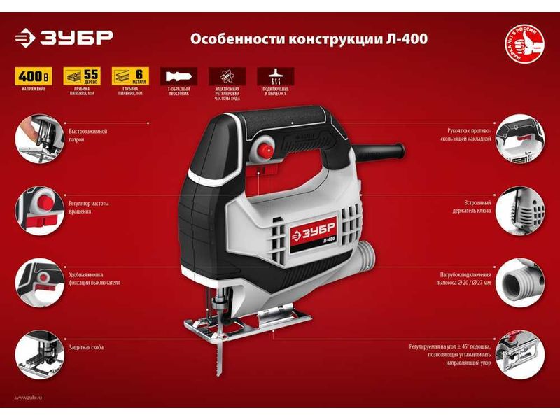 Для продольного, поперечного, под углом и фигурного пиления заготовок из дерева, фанеры, ДСП, пластмасс и металла (при установке соответствующего полотна)
