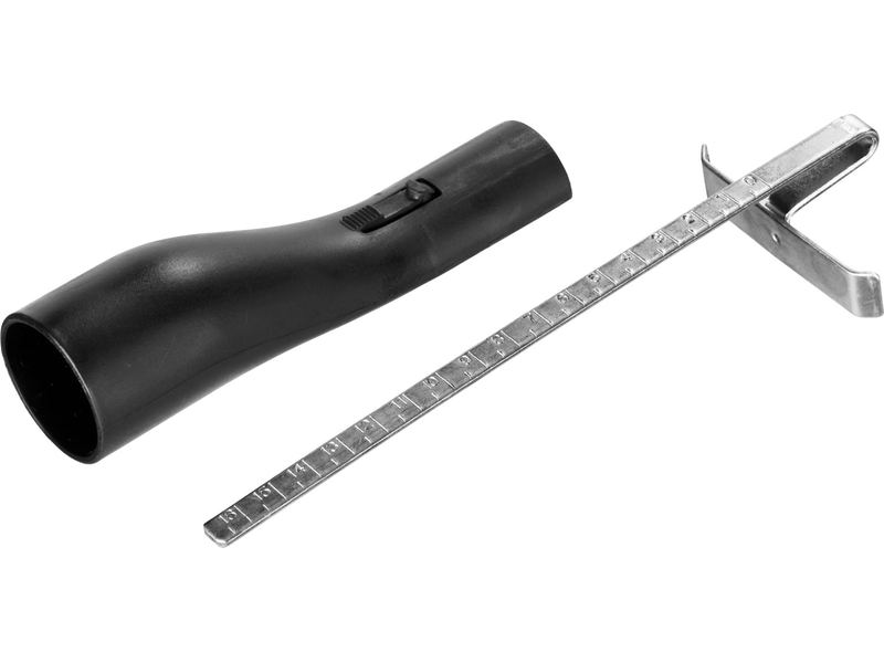 Патрубок подключения к пылесосу снижает запыленность при пилении;