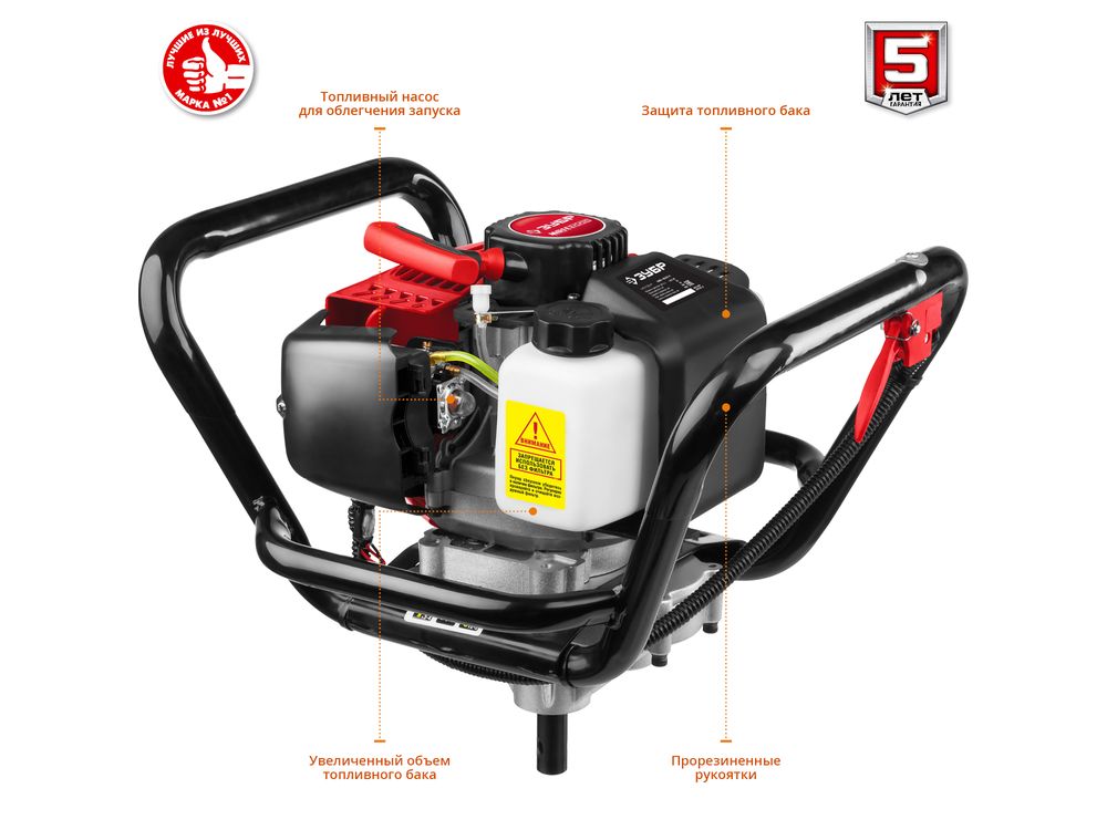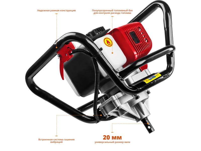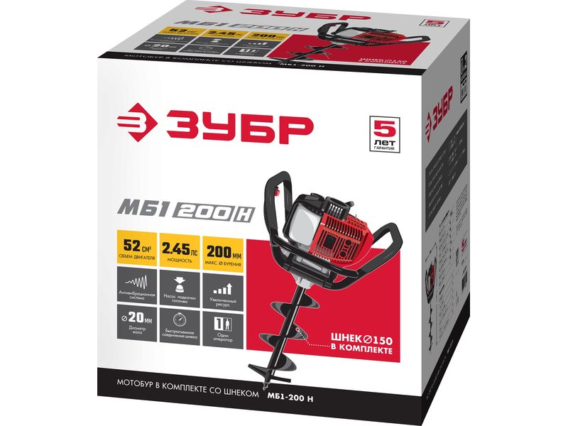 Мотобур (бензобур), d-60-200 мм, 52 см3, 1 оператор, ЗУБР