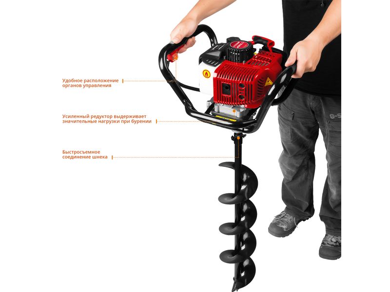 Простой и надежный мотобур для бурения различных грунтов и льда. Активно применяется в строительной и хозяйственной деятельности и позволяет сделать скважину качественно и в короткие сроки. Оснащен мощным 2-х тактным мотором и системой легкого запуска. Оперативная замена шнека позволяет легко адаптировать мотобур под решение разного вида задач. Прочная сварная рама, удобная для работы, обеспечивает дополнительную сохранность двигателя при работе.