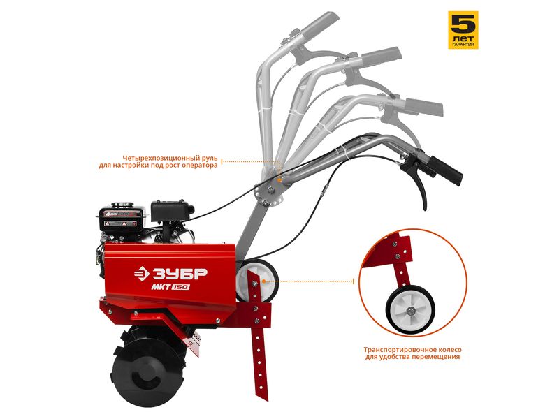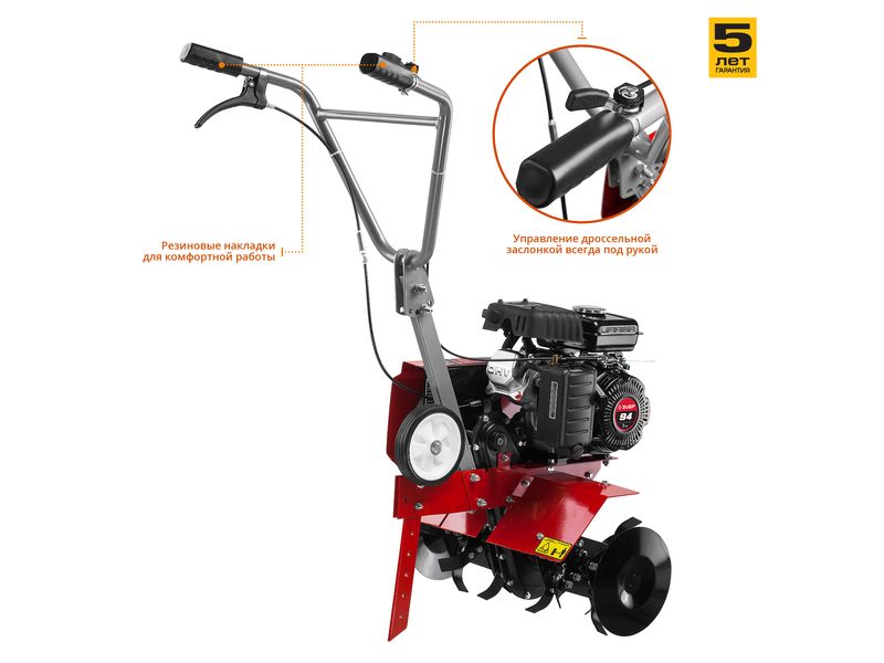 Рукоять культиватора с возможностью регулировки по вертикали делает управление более комфортным