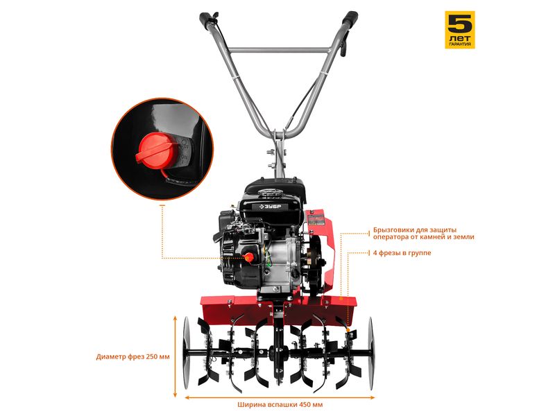 На корпусе предусмотрен щиток, защищающий оператора от попадания земли