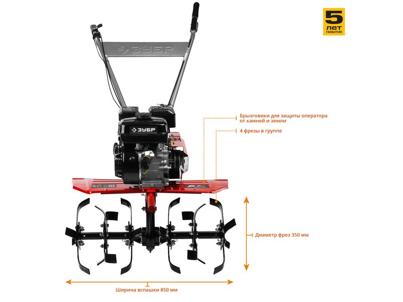 На корпусе предусмотрен щиток, защищающий оператора от попадания земли