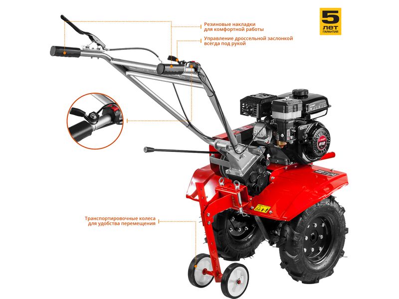 Мощный бензиновый мотоблок предназначен для рыхления и культивирования, а при использовании дополнительного навесного оборудования спектр применения мотоблока значительно расширится. Модель предлагает отличное сочетание высокой производительности, управляемости и устойчивости. Сделано в России. Обратите внимание, что c 07.2021 сошник поставляется без транспортировочных колес
