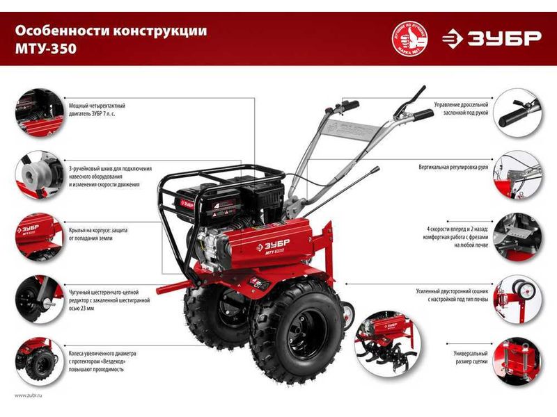 Купить ЗУБР МТУ-350 мотоблок бензиновый усиленный 212 см3