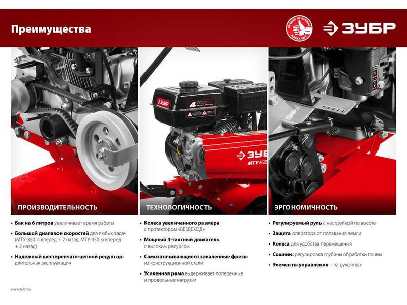 Купить ЗУБР МТУ-450 мотоблок бензиновый усиленный, 212 см3